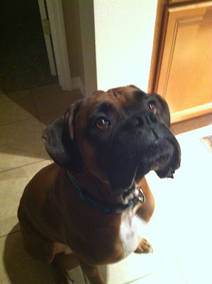 While Lucy is still prone to moments of boxer silliness, she is really becoming quite a little lady... if you consider drooling to the point of making bubbles ladylike, that is! I will say that this little boxer has an intense sense of smell, and she most certainly loves her pizza!